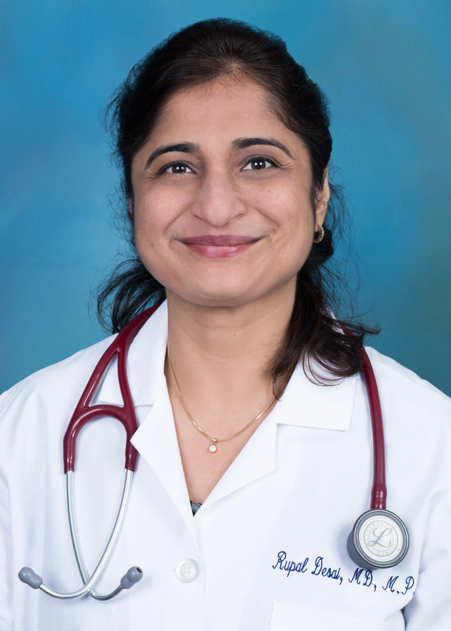 Rupal Desai, M.D. received her Bachelor of Medicine and Bachelor of Surgery degrees from North Maharashtra University in India. Dr. Desai received a Masters in Public Health from Yale University in 2000 with an emphasis of study in chronic disease epidemiology. Her research was on breast cancer risk factors.